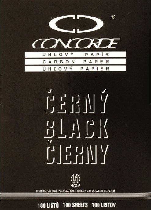 | 1715916 | Uhlový papír černý CONCORDE /100 listů/ A4 | 78,59 Kč | 95,09 Kč | 1 bal | |||