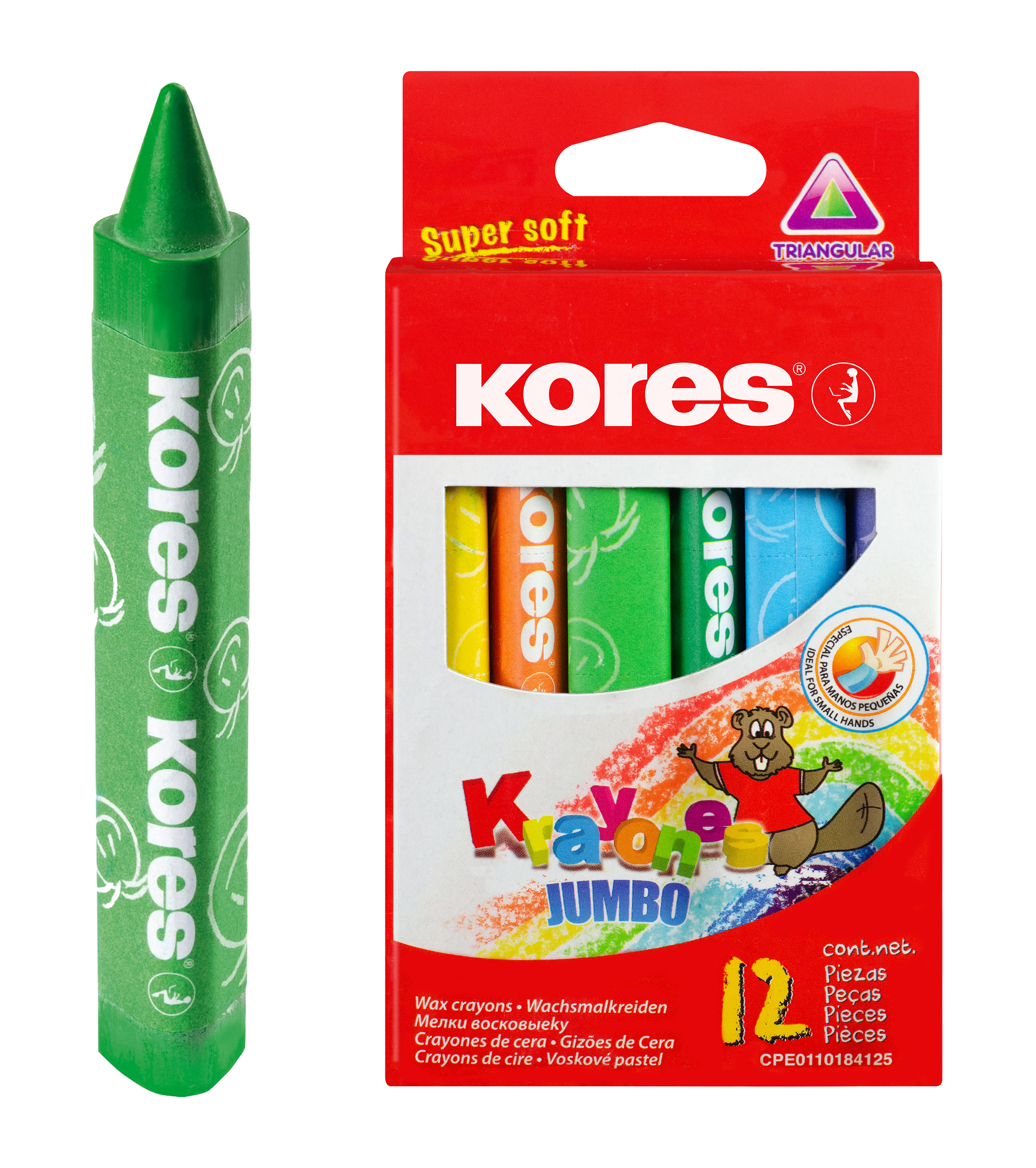 VOSKOVKY KORES trojhranné JUMBO, 12 barev