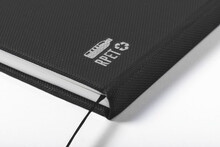 RPET blok A5 potažený polyesterem s 80 linkovanými listy, záložkou a gumičkou.