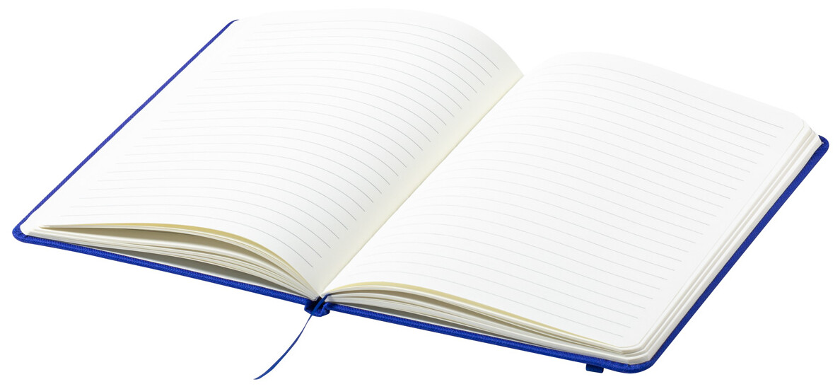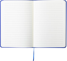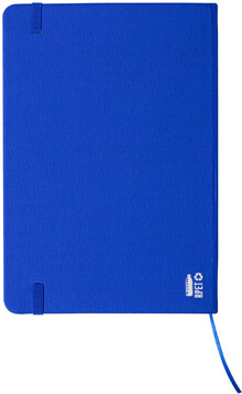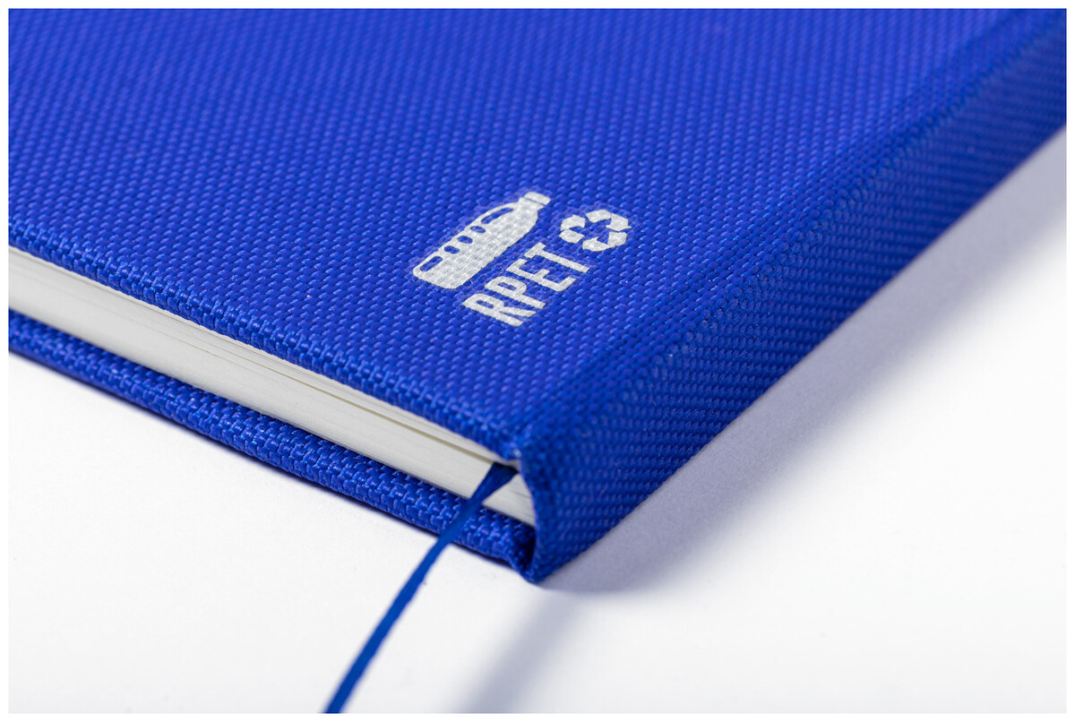 RPET blok A5 potažený polyesterem s 80 linkovanými listy, záložkou a gumičkou.