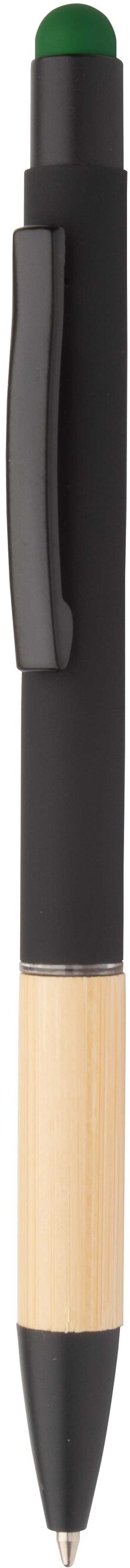Hliníkové kuličkové a dotykové pero s bambusovým úchopem a pogumovaným povrchem. Se speciální vrstvou pro zrcadlové gravírování odpovídající barvě stylusu. S modrou náplní.