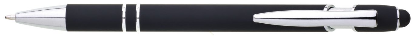Propiska s touch koncem, měkkým pogumovaným soft povrchem v černé barvě a stříbrnými doplňky včetně dvou ozdobných kroužků. (NATIO)