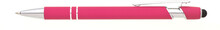 Propiska s touch koncem, měkkým pogumovaným soft povrchem ve růžové barvě a stříbrnými doplňky včetně dvou ozdobných kroužků. (NATIO)