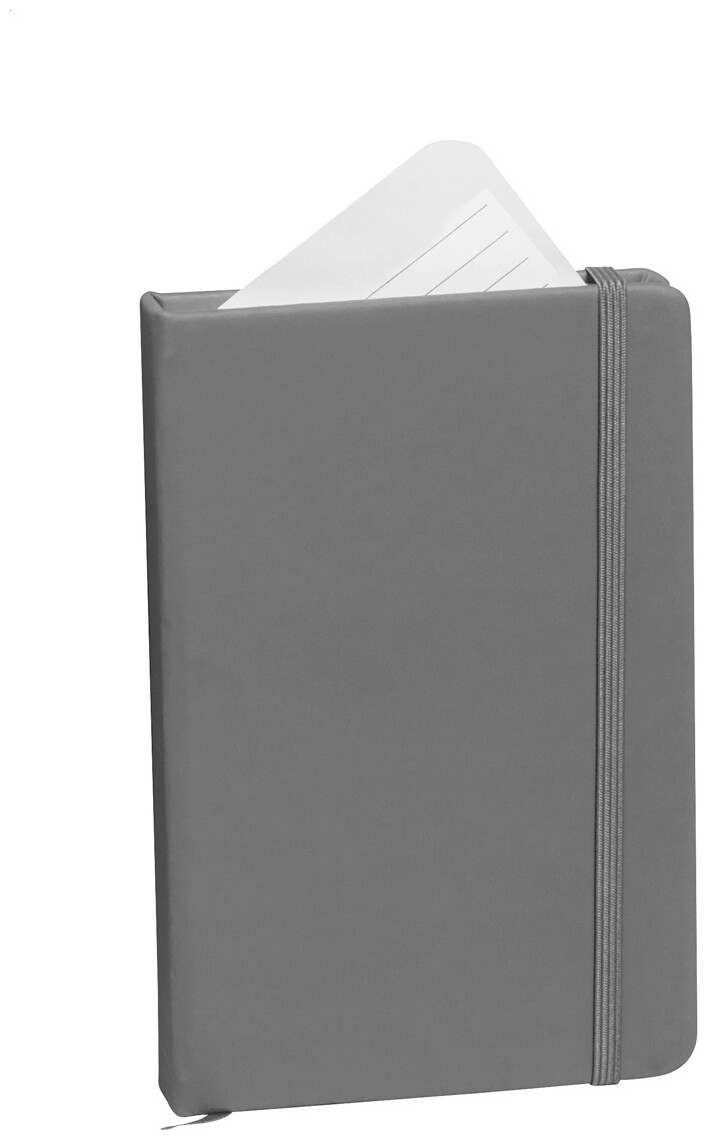 Blok s deskami z PU kůže, se 100 linkovanými listy, záložkou a gumičkou. Velikost A6.