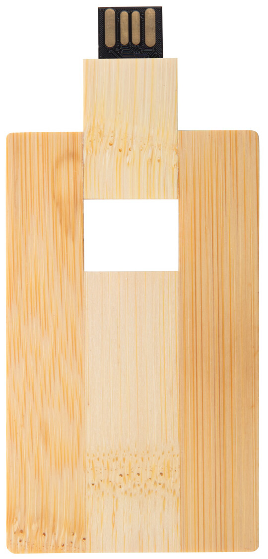 USB flash disk z bambusu, 4/8/16/32 GB, ve tvaru kreditní karty. USB 2.0.
