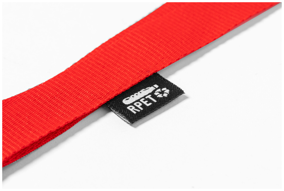 Polyesterová lanyard RPET s kovovou karabinou.