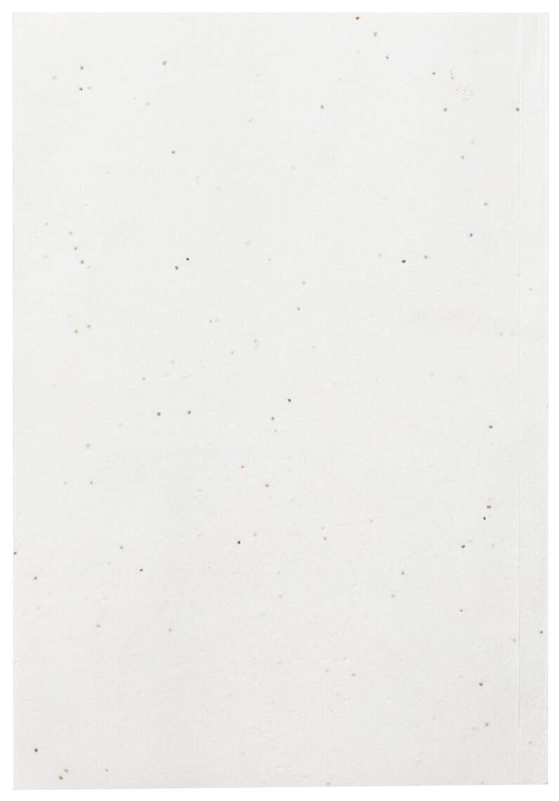 Blok A5 z recyklovaného kraftového papíru potažený papírem se semínky se 60 čistými listy. Obal papíru se semínky obsahuje semena petúnie v různých barvách, která lze zasadit oddělením obalu od sešitu.