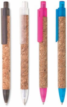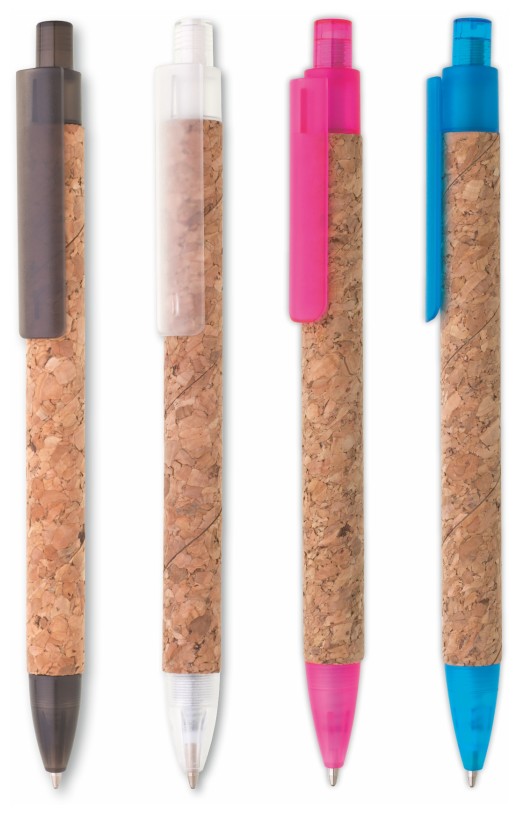 Propiska s korkovým povrchem KORK - tělo je potaženo korkem, špička, klip a cvakátko je z tyrkysového plastu.(korek)