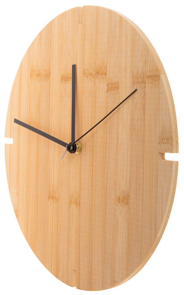 Kulaté nástěnné hodiny z bambusu. Funguje na 1 AA baterii, dodává se bez baterie.