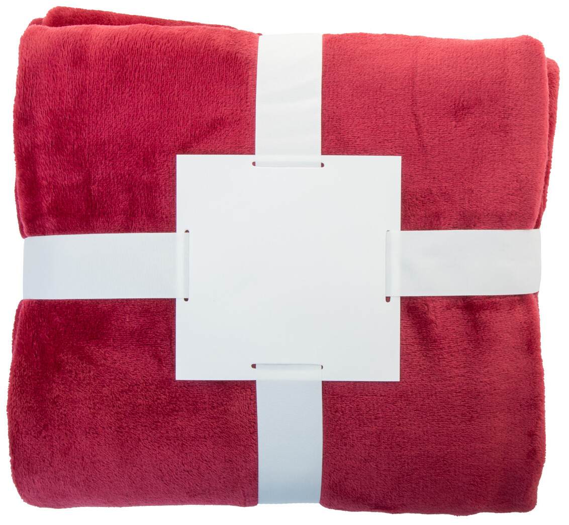 RPET flanelová fleecová deka, 260 gr/m2. Zabalené do stuhy a potisknutelné papírové karty.