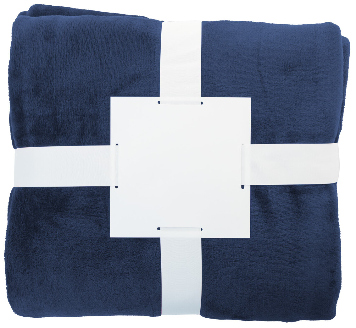 RPET flanelová fleecová deka, 260 gr/m2. Zabalené do stuhy a potisknutelné papírové karty.