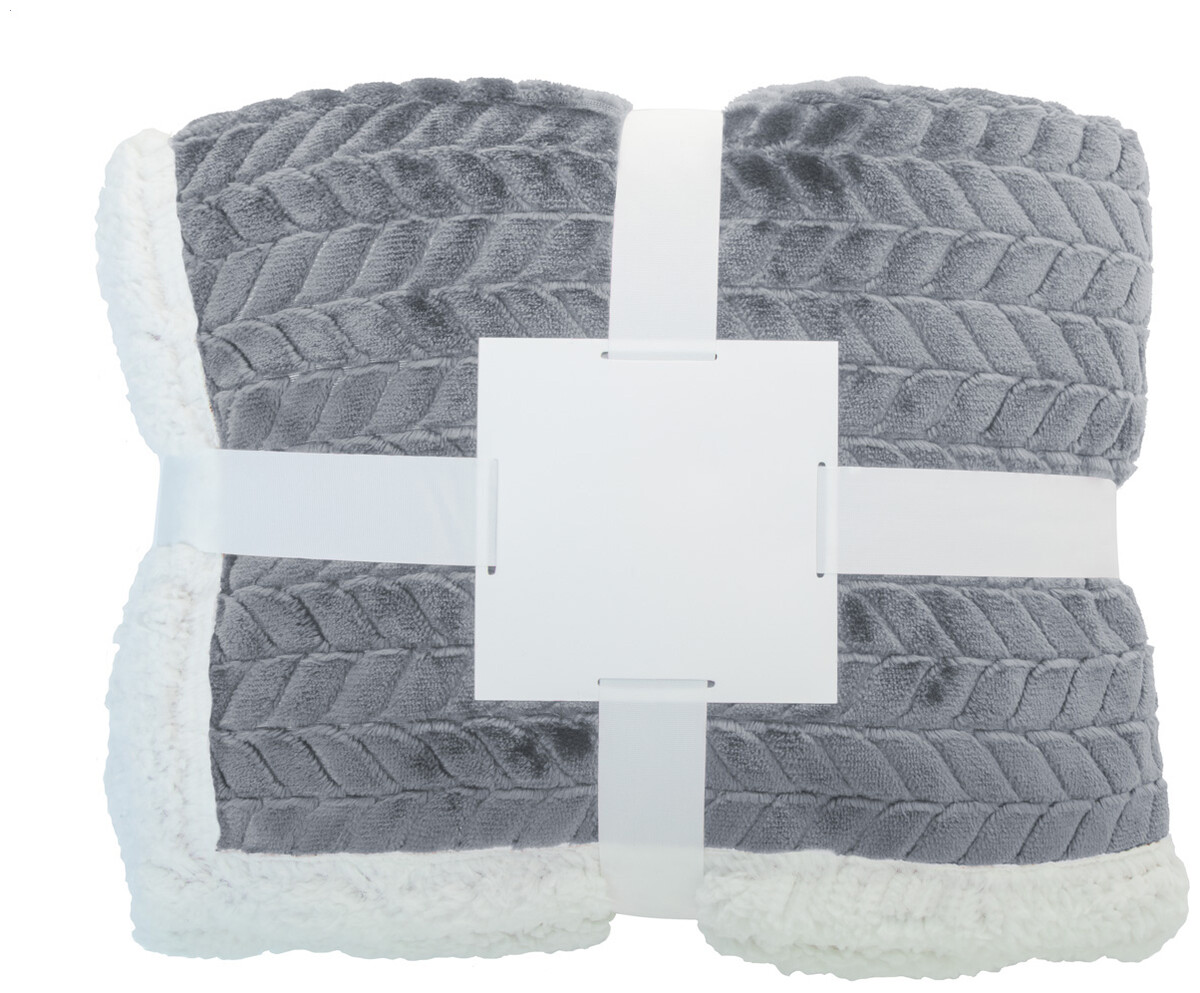 Dvouvrstvá RPET deka se žakárovým vzorem ze 240 g/m2 flanelového fleecu RPET a oboustrannou podšívkou 210 g/m2 RPET sherpa fleecu. Zabalené do stuhy a potisknutelné papírové karty.