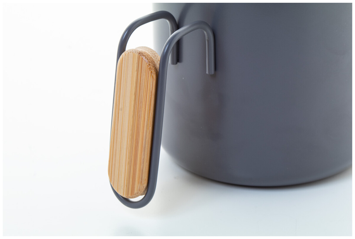 Dvoustěnný termo hrnek z recyklované nerezové oceli s bambusovým víčkem a rukojetí. 300 ml.