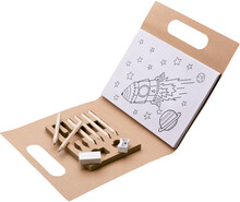 Sada 6 ks pastelek, guma, ořezávátko a 30 stran omalovánek v deskách z natur papíru.