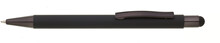 Černé pogumované matné tělo propisky doplňují lesklé doplňky v barvě těla a matný touch konec. Logo po vylaserování je lesklé stříbrné. Velkoobsahová modře píšící náplň.