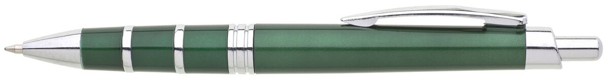 Metalické zelené tělo s chromovými ozdobnými kroužky a chromovými doplňky. Náplň velkoobsahová, modře píšící.