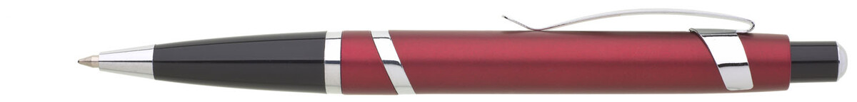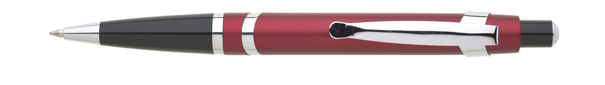 Tmavě červené tělo je doplněno černou špičkou a originálními chromovými doplňky. Náplň velkoobsahová, modře píšící.