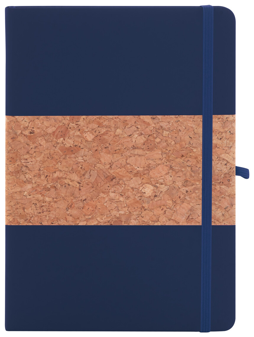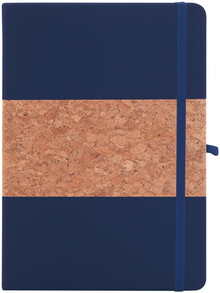 Blok A5 potažený přírodním korkem a recyklovanou PU kůží se záložkou v odpovídající barvě, gumičkou a držákem na pero. S 80 linkovanými listy z recyklovaného papíru.
