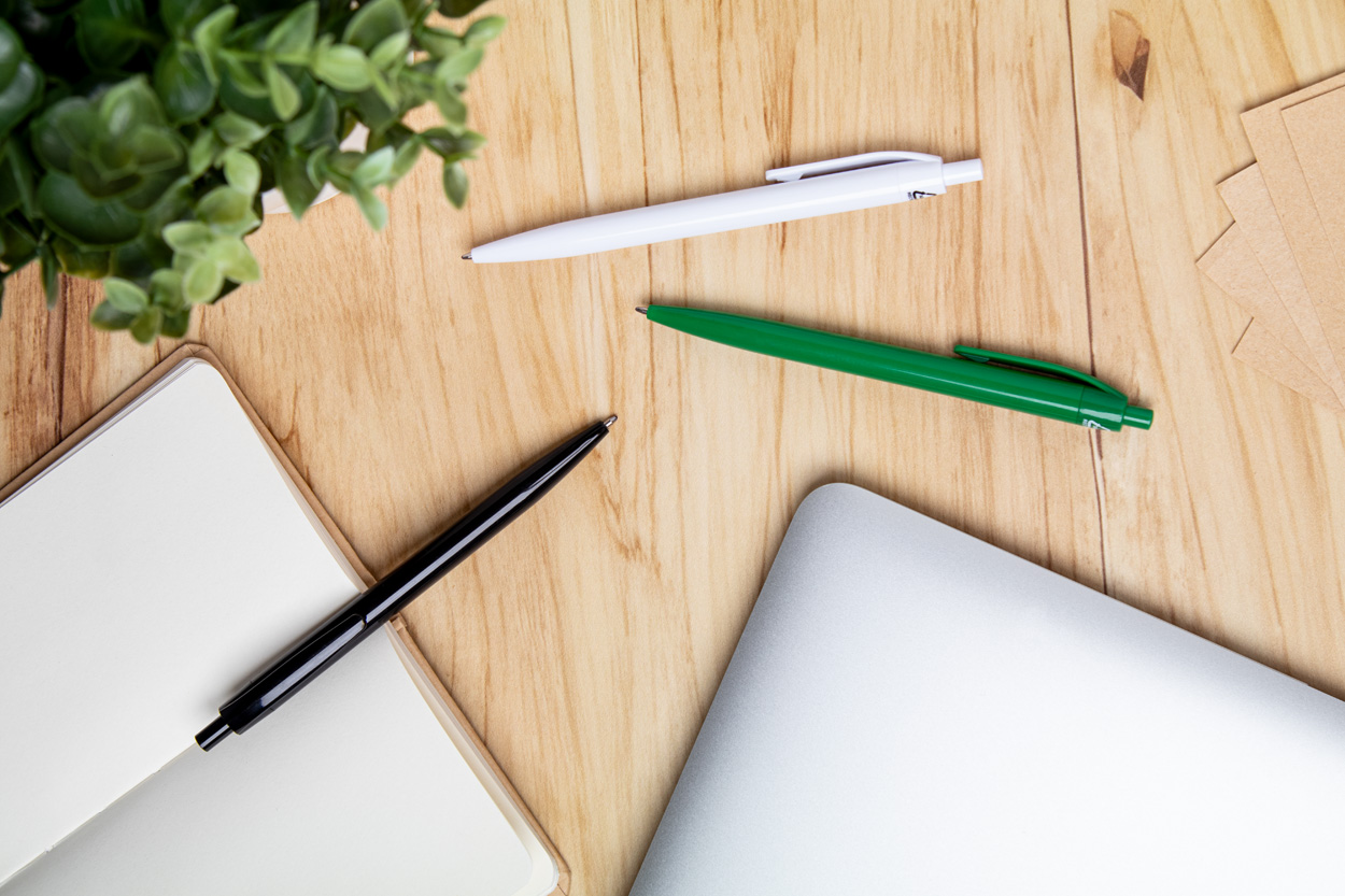 Kuličkové pero z recyklovaného ABS plastu s modrou náplní.