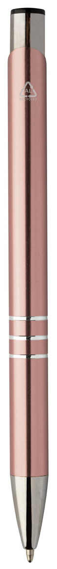 Kuličkové pero z recyklovaného hliníku s metalickým povrchem a modrou náplní.