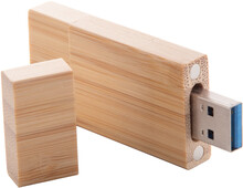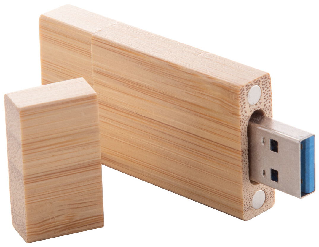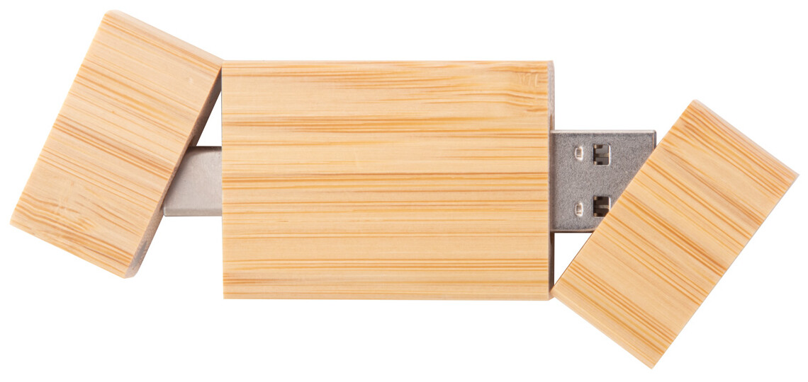 OTG USB flash disk v bambusovém pouzdře s pamětí 4/8/16/32 GB. S konektory USB a USB-C. V kraftovém papírovém sáčku. USB 2.0.