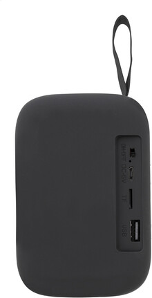 Bezdrátový reproduktor v plastovém krytu s polyesterovou tkaninou a vestavěnou dobíjecí baterií (250 mAh). Včetně nabíjecího kabelu USB.