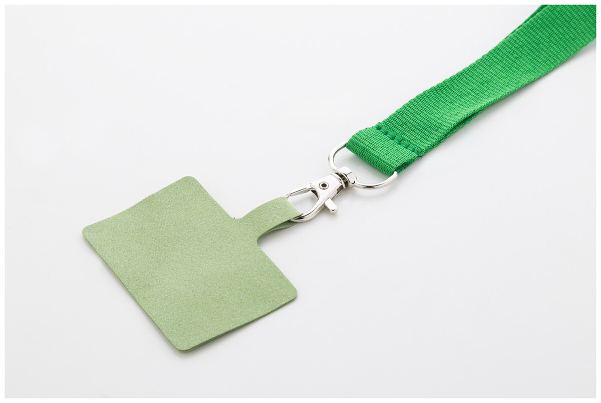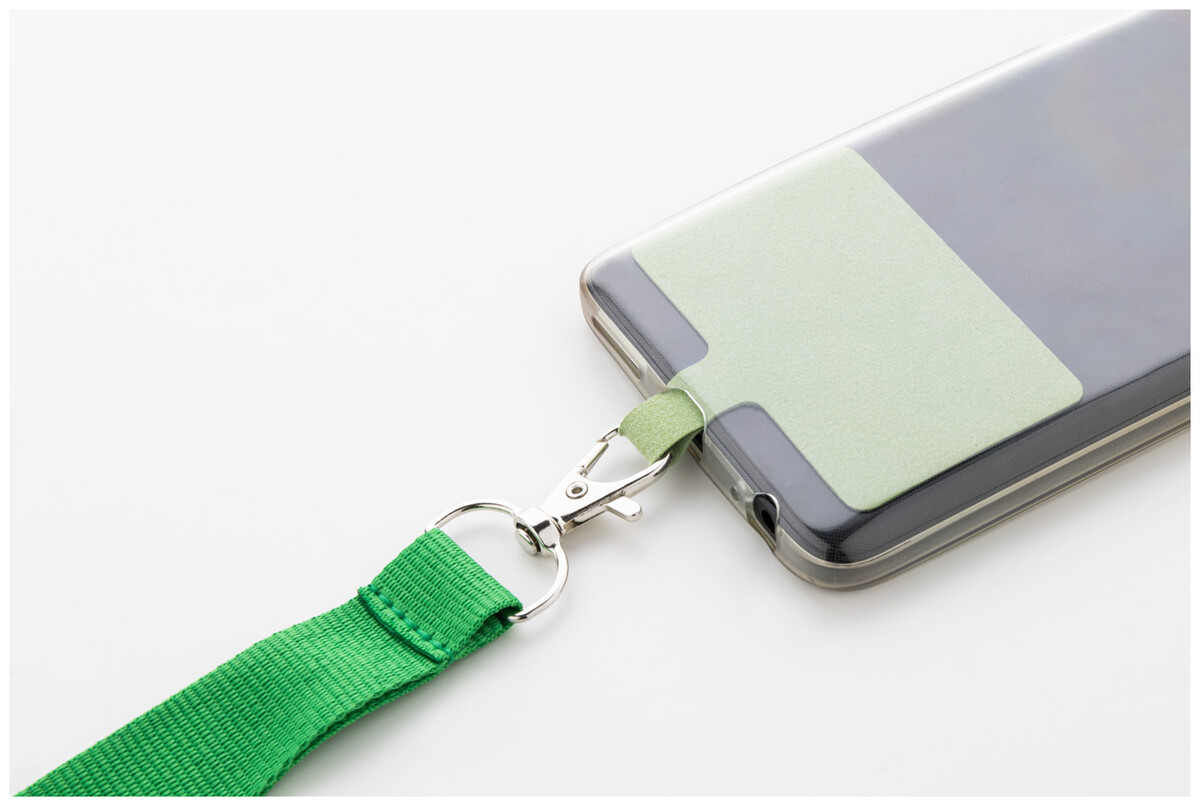 RPET lanyard na mobil s kovovou karabinou, bezpečnostní přezkou a vložkou na telefon ve stejné barvě.