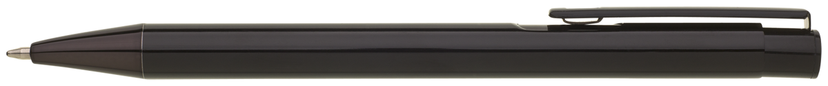 Kuličkové pero RAVELI je vyrobeno z hliníku s lesklým černým povrchem. Velkoobsahová náplň, modře píšící.
