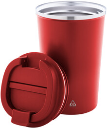 Dvoustěnný termo hrnek z recyklované nerezové oceli s víčkem na pití z PP. 350 ml.