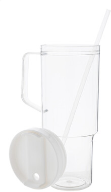 Jednostěnný cestovní hrnek z RPET s PP víčkem na pití a brčkem v odpovídající barvě. 1200 ml.