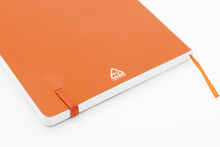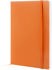 Blok A5 z recyklované PU kůže s měkkou vazbou s 80 linkovanými listy z recyklovaného papíru. Se záložkou v odpovídající barvě a gumičkou.