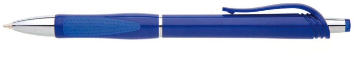 Modrá, plastová propiska s pochromovanými doplňky jako jsou klip, tělo cvakátka a proužek uprostřed těla tužky. Grip je částečně pogumovaný v barvě tužky, stejně jako klip a vrchní část cvakátka. Náplň X20, hrot 1mm.