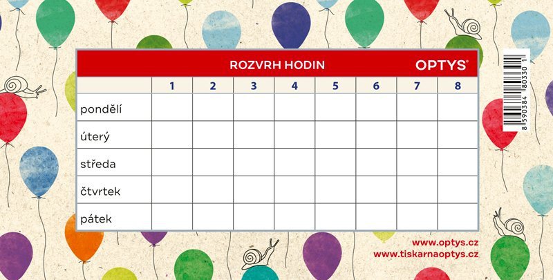 OPT-8033 | Školní rozvrh s motivem balónky | 7,29 Kč | 8,82 Kč | 1 bal |