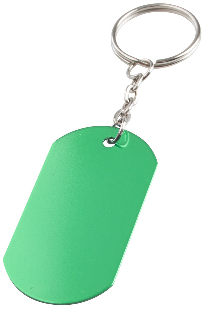 Hliníkový přívěšek na klíče s kovovým kroužkem.