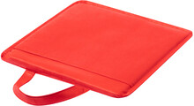 Polštářek na sezení z netkané txtilie s uchem a kapsou.