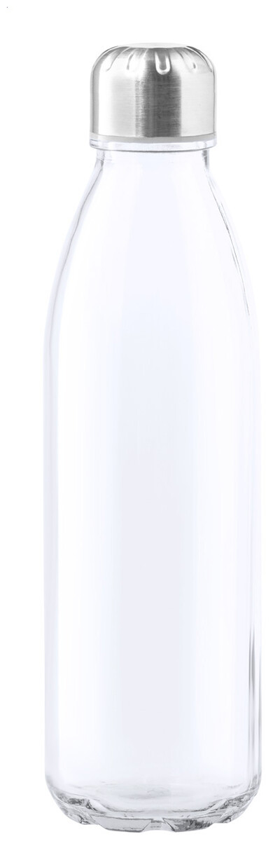 Průhledná skleněná láhev s nerezovým uzávěrem, 650 ml. Nevhodné pro sycené nápoje.