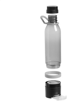 Plastová multifunkční sportovní láhev s chladicím ručníkem (390 g/m2) ve spodní přihrádce a výsuvným držákem na mobilní telefon. V dárkovém balení. Objem 650 ml. Není vhodná pro sycené nápoje.