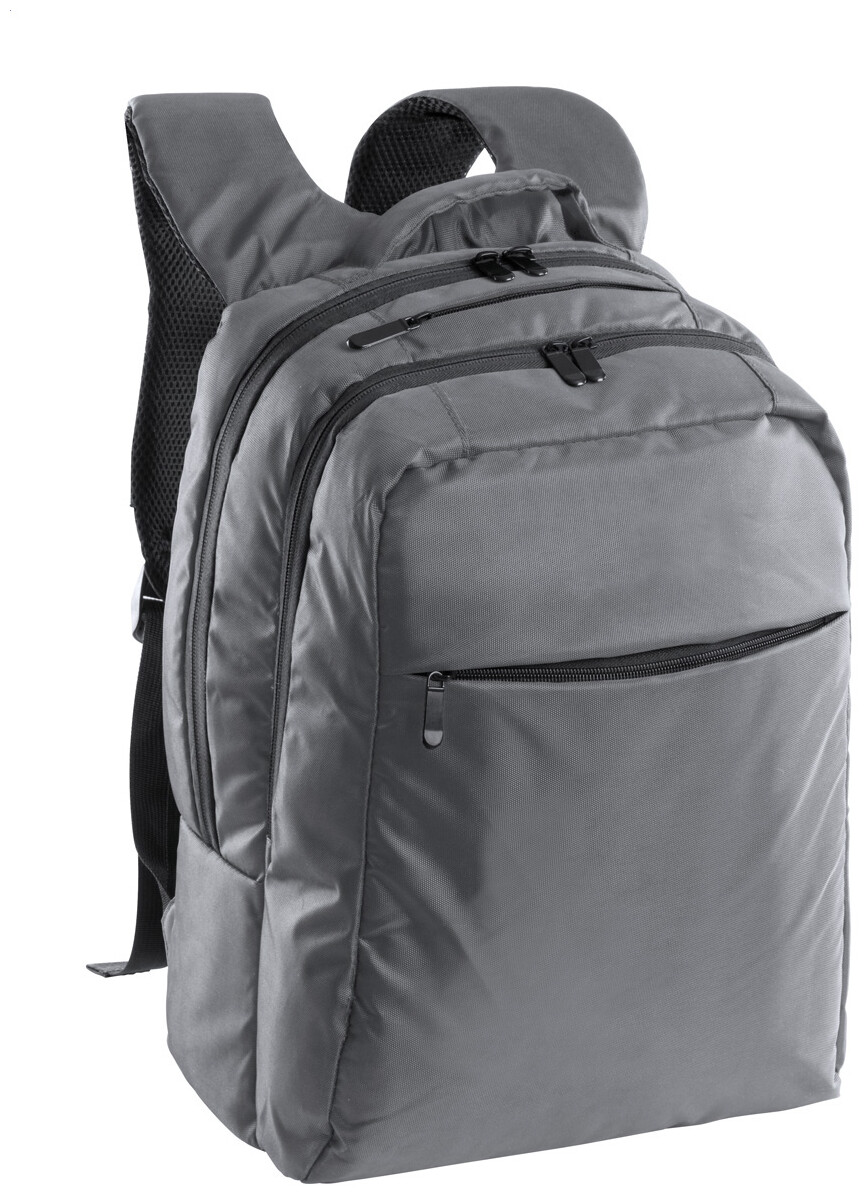 Batoh s mnoha přihrádkami na zip, vypolstrovanou přihrádkou na laptop (15"), vypolstrovanými zády a popruhy, 600D nylon.