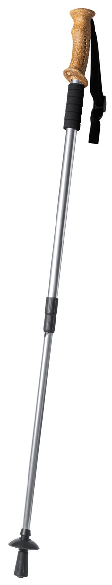 Teleskopická trekingová hůl na nordic walking s hliníkovým tělem, ergonomickou rukojetí z přírodního korku, poutkem na zápěstí a anti-shock systémem. S košíkem na sníh v přenosné tašce z netkané textilie.