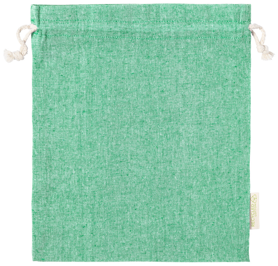Opakovaně použitelný pytlík na potraviny z recyklované bavlny se stahování na šňůrku. 100% recyklovaná bavlna, 120 g/m2.