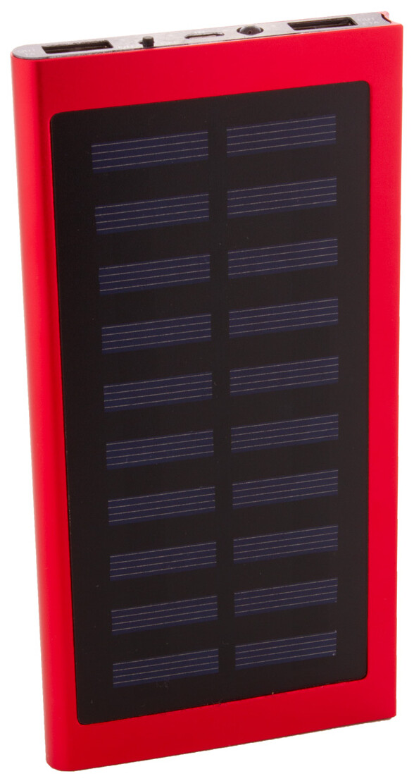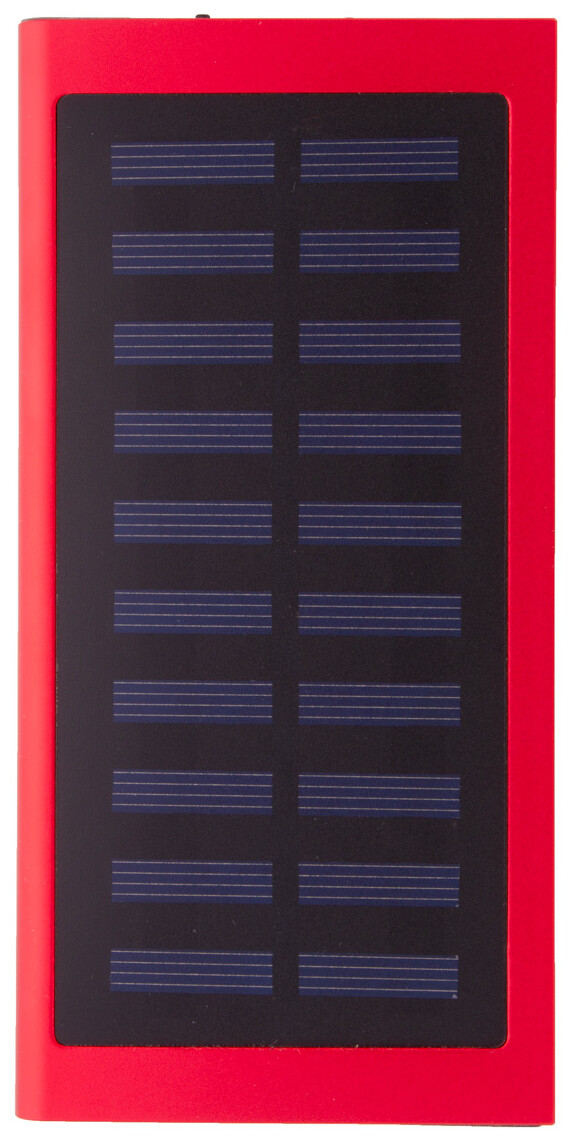USB power banka v pouzdře z recyklovaného hliníku se zabudovanou solární nabíječkou a 4000 mAh baterií. Se 2 porty USB a 1 portem USB-C pro nabíječku. Vstupní port USB-C. Včetně USB nabíjecího kabelu.