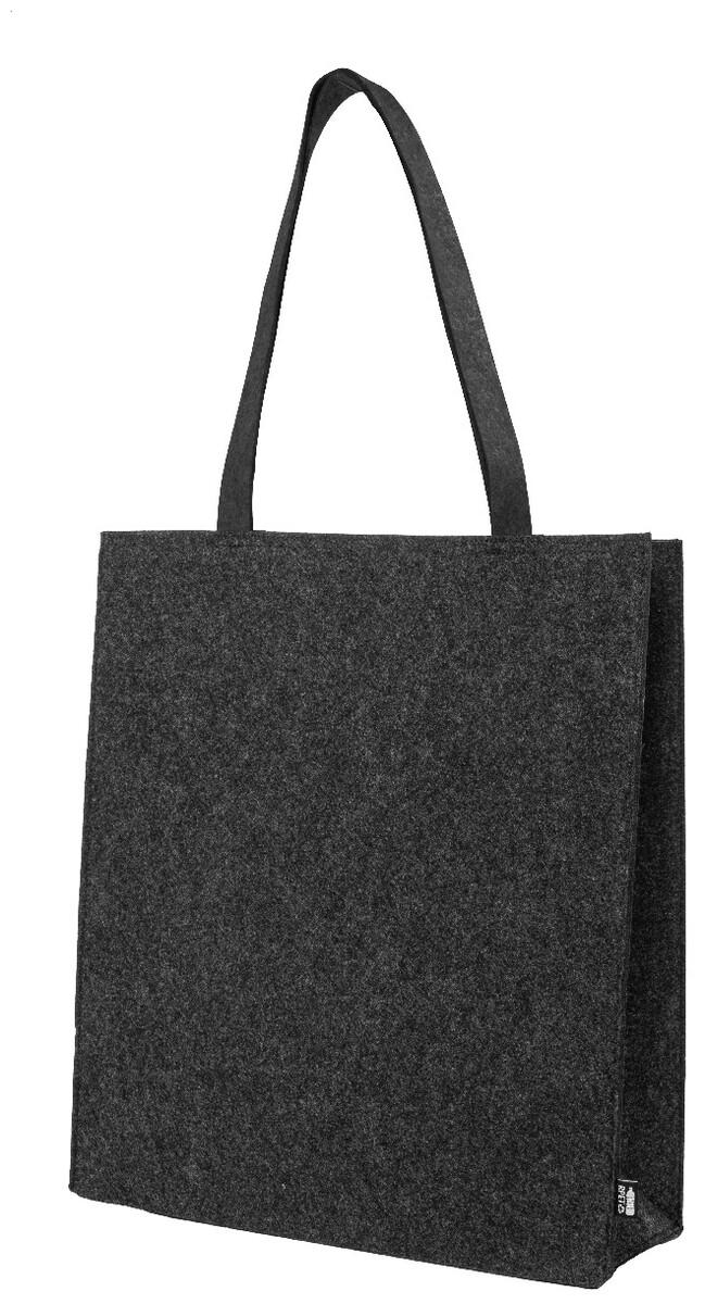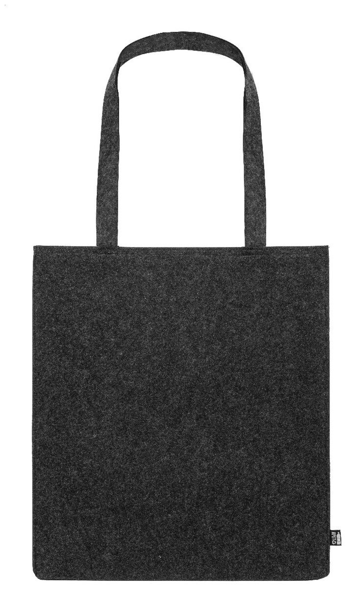 Nákupní taška z RPET plsti s klínkem a dlouhými uchy. S výraznou etiketou z RPET.