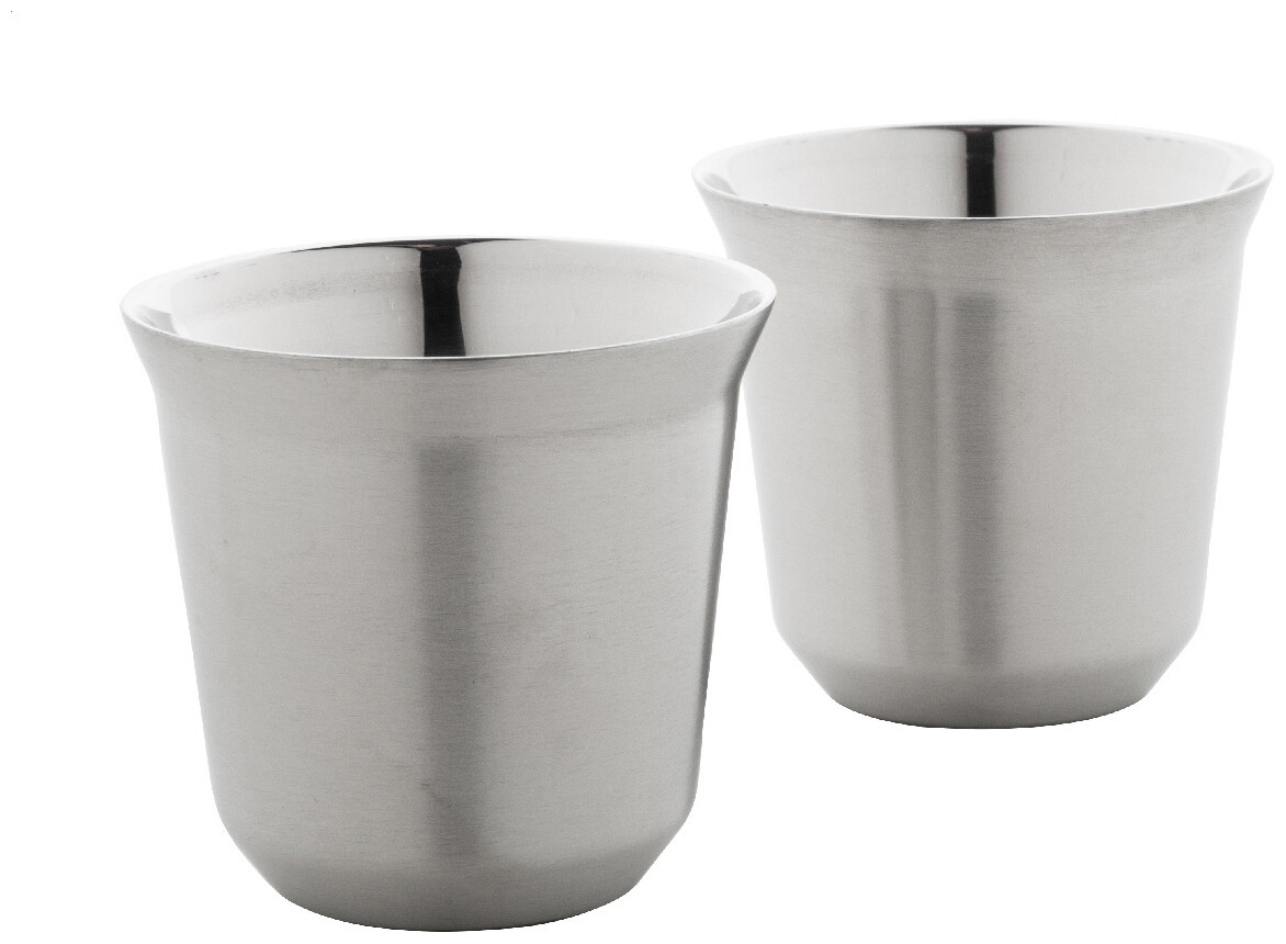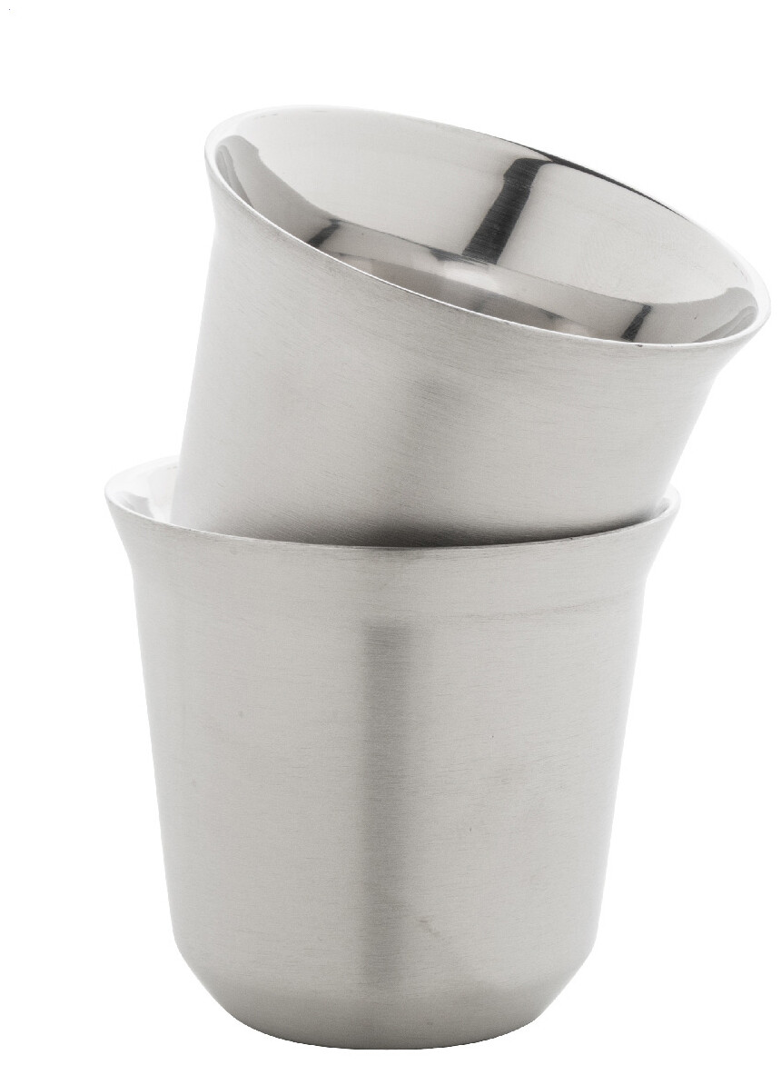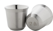 Sada 2 dvoustěnných termohrnků na espresso ve tvaru kávových kapslí z recyklované nerezové oceli, 80 ml. V krabičce z kraftového papíru.