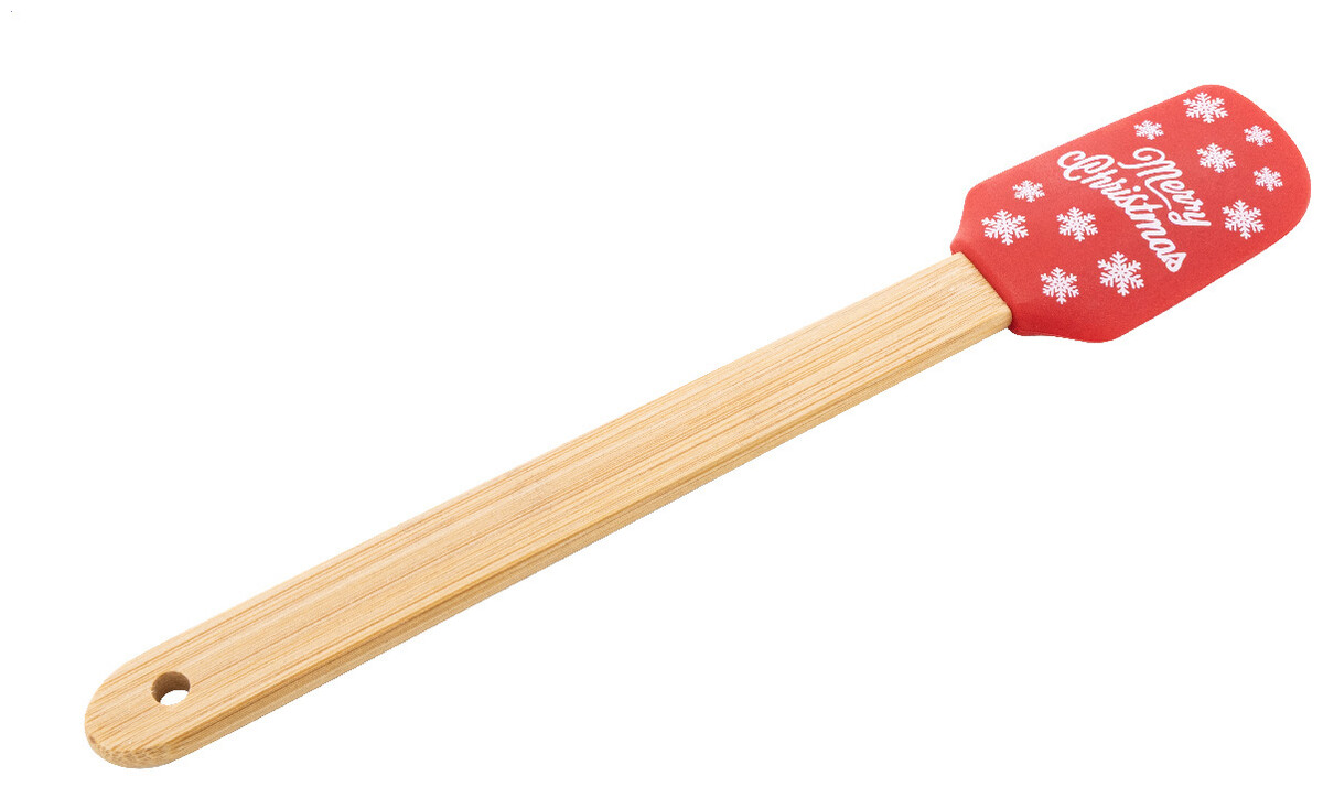 Silikonová špachtle na pečení s vánočním designem a bambusovou rukojetí.