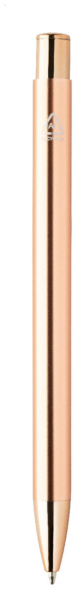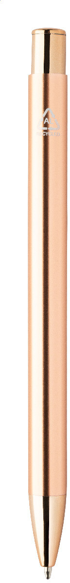 Kuličkové pero z recyklovaného hliníku s lesklým kovovým povrchem. S modrou náplní.