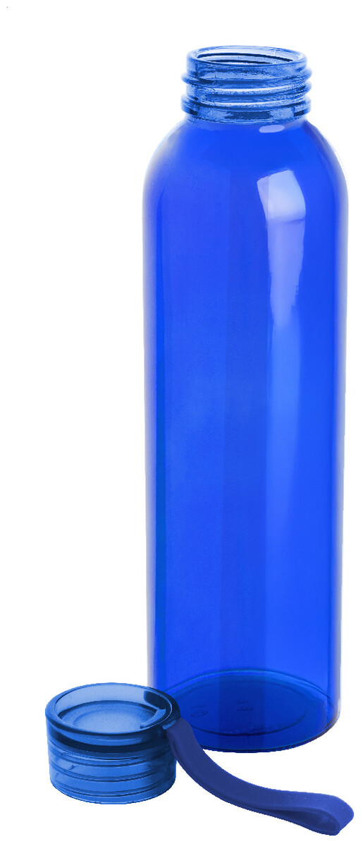 Láhev z recyklovaného skla s barevně odpovídajícím PP víčkem a silikonovým popruhem, 500 ml. Nevhodné pro sycené nápoje.