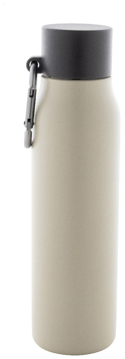 Dvoustěnná vakuová láhev z recyklované nerezové oceli s víčkem z PP a karabinou z recyklovaného hliníku. 500 ml.