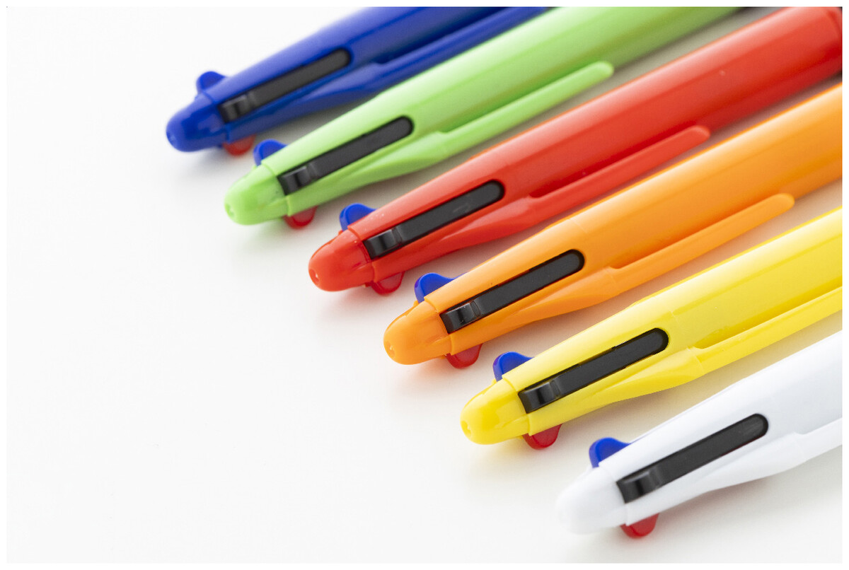Vícebarevné kuličkové pero z recyklovaného ABS materiálu s gumovým úchopem. S černou, modrou, červenou a zelenou náplní.