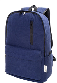 Recyklovaný plátěný batoh s hlavní přihrádkou na zip, polstrovanou přihrádkou na notebook (15"), 2 předními kapsami na zip, bočními kapsami, popruhem na kolečkách, polstrovanými zády a ramenními popruhy. 70% recyklované bavlny a 30% RPET polyesteru. S výrazným štítkem recyklované bavlny.