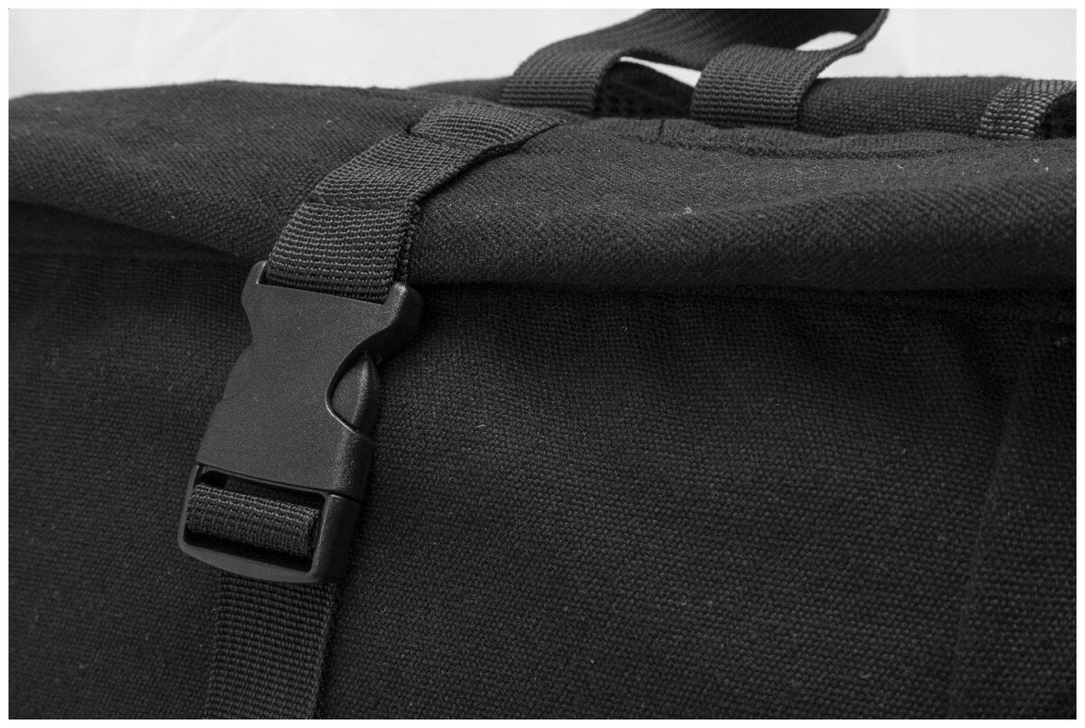 Rolovací batoh z recyklovaného plátna se zapínáním na přezku a přední kapsou na zip z měkké recyklované PU kůže. S polstrovanou přihrádkou na notebook (15"), bočními kapsami, polstrovanými zády a ramenními popruhy. 70% recyklované bavlny a 30% RPET polyesteru. S výrazným štítkem z recyklované bavlny.